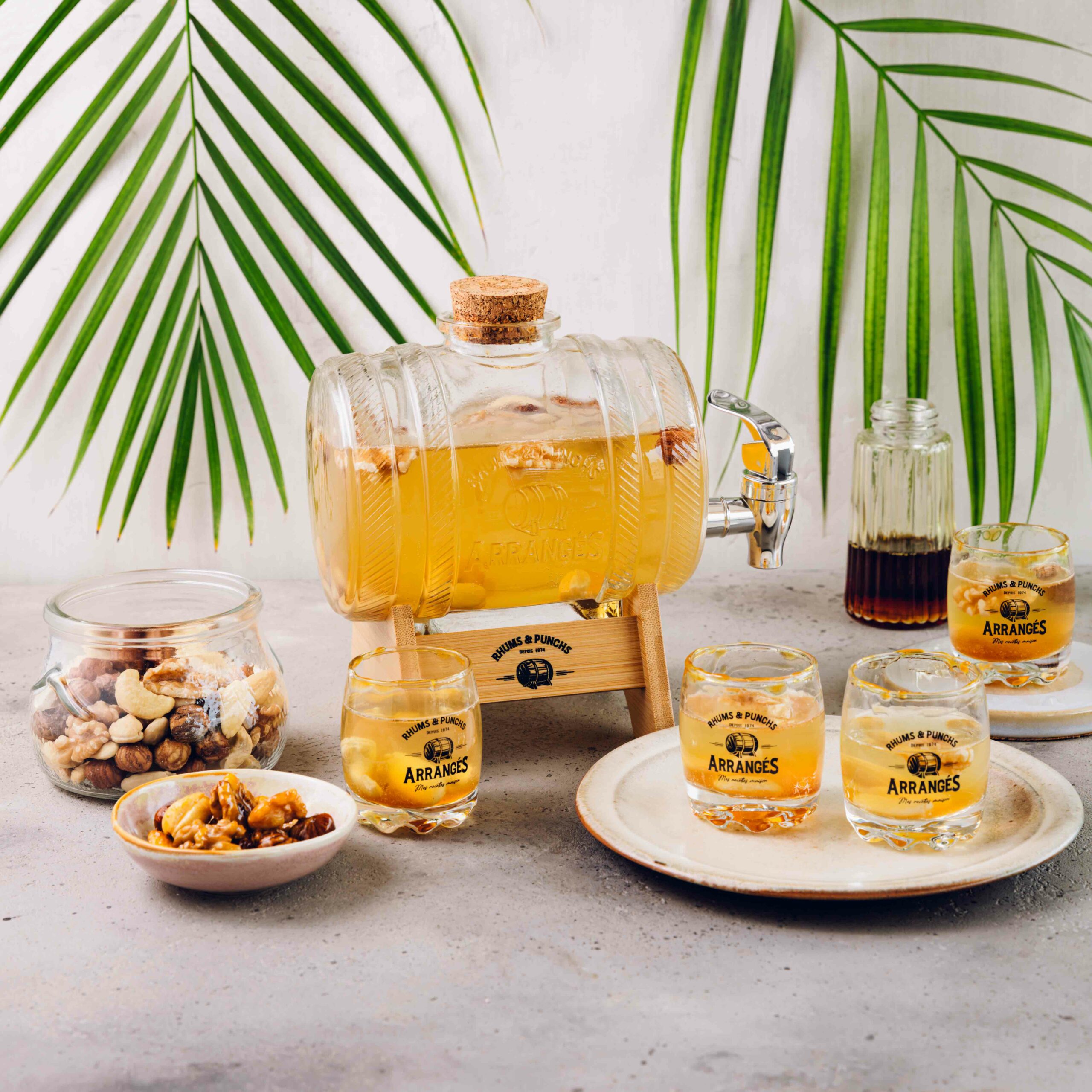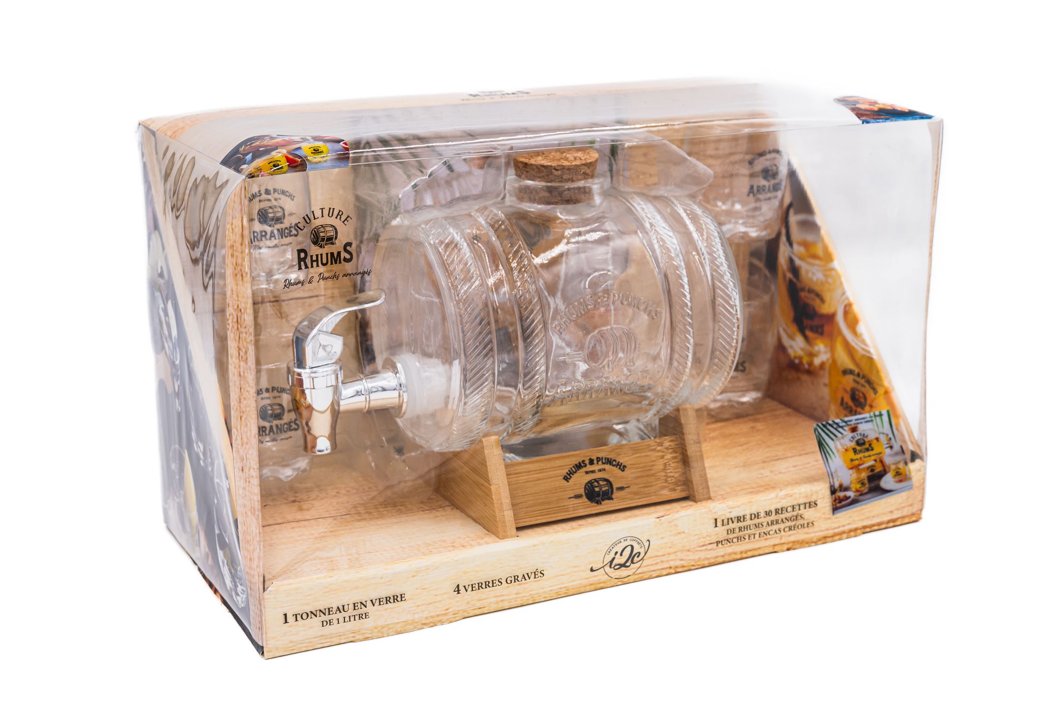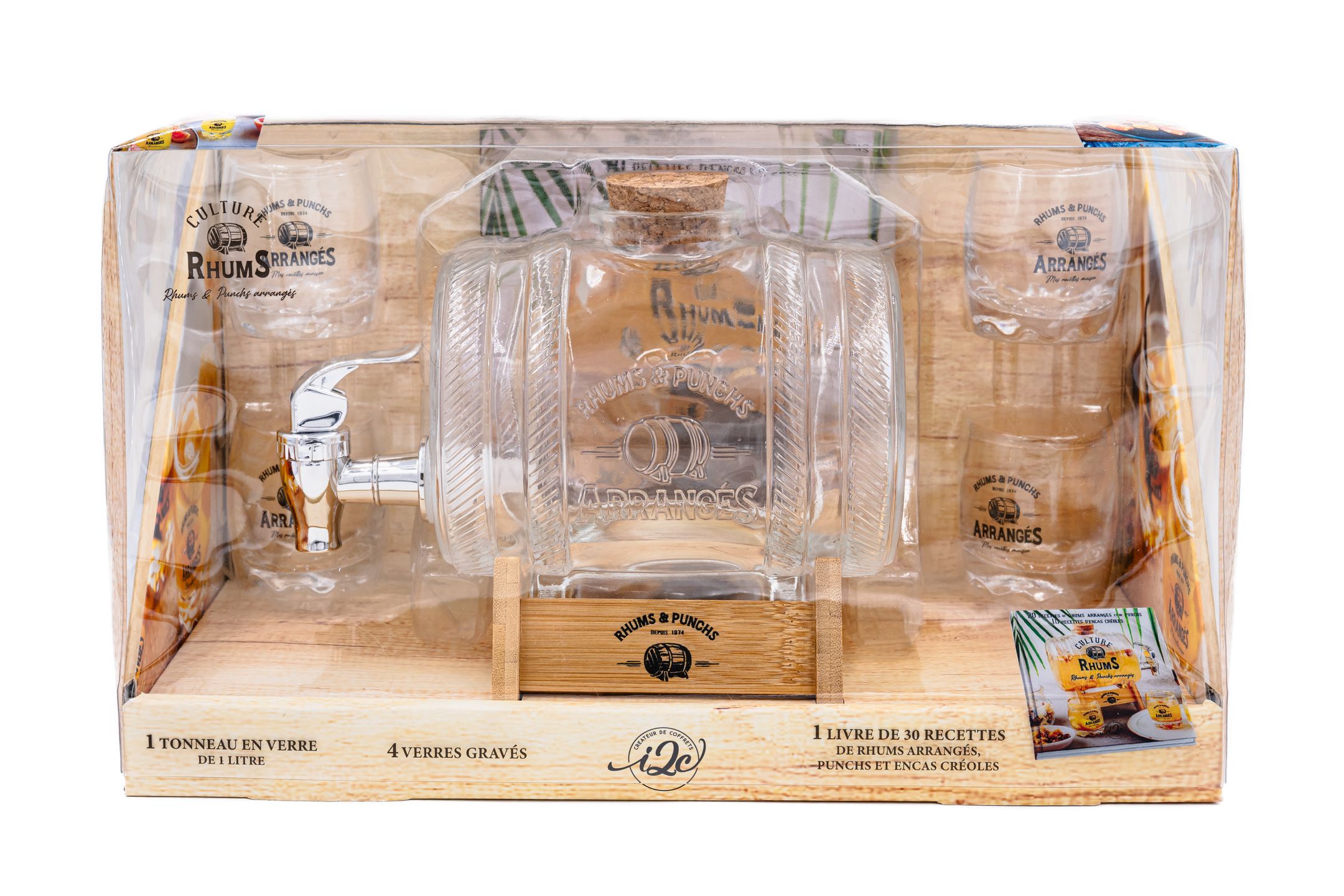 Abandonnez vous à votre passion et devenez maître en rhums arrangés et punchs grâce à ce super coffret Culture Rhums, comprenant 4 verres à dégustation gravés, un tonneau en verre de 1000ml avec son socle en bambou gravé et un livre de 30 recettes de boissons et d'encas créoles. Vous pourrez préparer, conserver et déguster vos délicieuses préparations tout en les accompagnant de savoureux encas créoles : évasion garantie!
